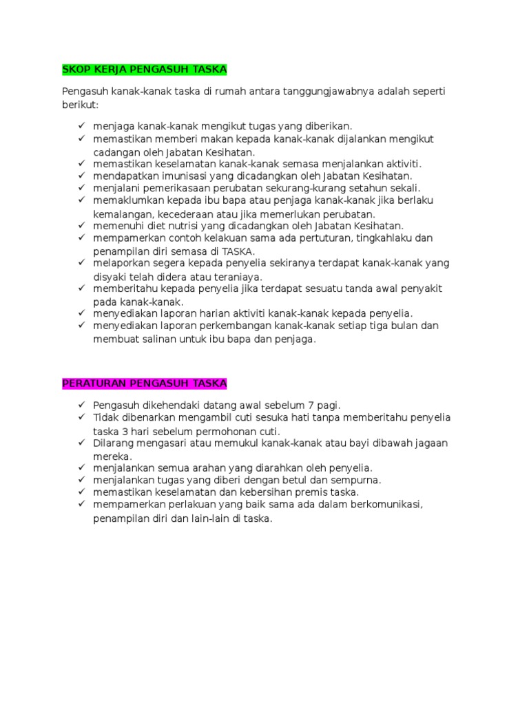 Muat turun halaman 1-18 di AnyFlip. Merancang menyusun program kurikulum TASKA. Sementara itu sesetengah ibu bapa tidak mengesyaki bahawa terdapat beberapa peraturan yang harus diikuti oleh guru tadika.